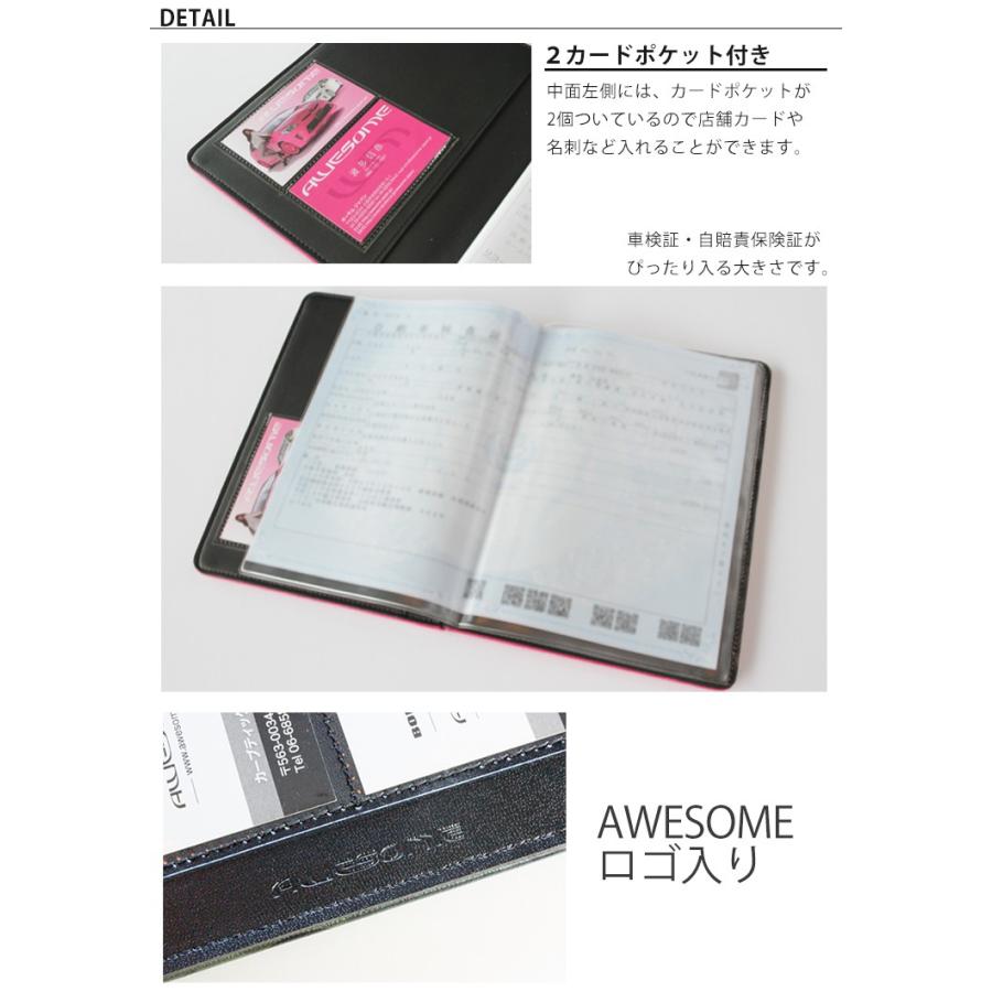 文字切れ名入れ レザー調 薄型 車検証入れ 全6色 オシャレ 車検証ケース マルチカラー シンプル 高級感 オリジナル 名入れ Awesome オーサム 可愛いcoverでナイスcover Awesome